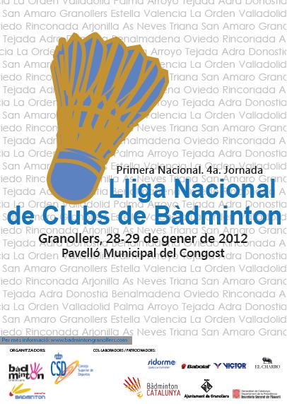 Els dies 28 i 29 de gener de 2012, el Pavelló del Congost de Granollers acollirà la quarta i darrera jornada de la fase regular (de grups) de la Lliga Nacional de clubs. Els 16 equips, procedents de diferents punts de la geografia espanyola, ja es van trobar anteriorment a Sevilla, València i Huelva. En aquesta darrera jornada es decidiran les posicions a la classificació general i es determinarà quins equips podran disputar la fase d’ascens i quins la de permanència o de descens, així que promet ser molt interessant.