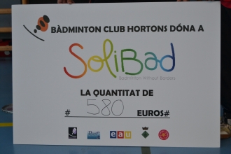 Finalment, el Bàdminton Club Hortons va extendre un xec a favor de SOLIBAD per la quantitat de 580 euros. Com diuen a SOLIBAD, “ DONAR ES REBRE”...