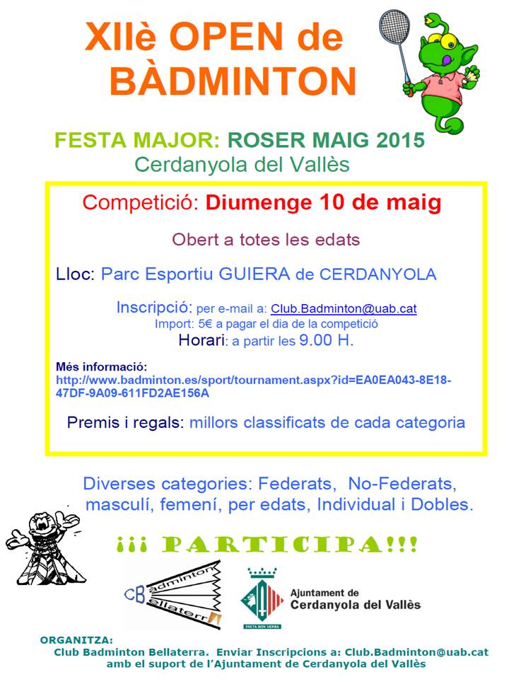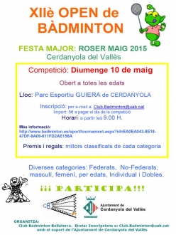 OPEN DE BÀDMINTON: ROSER DE MAIG 2015 A CERDANYOLA DEL VALLÈS
