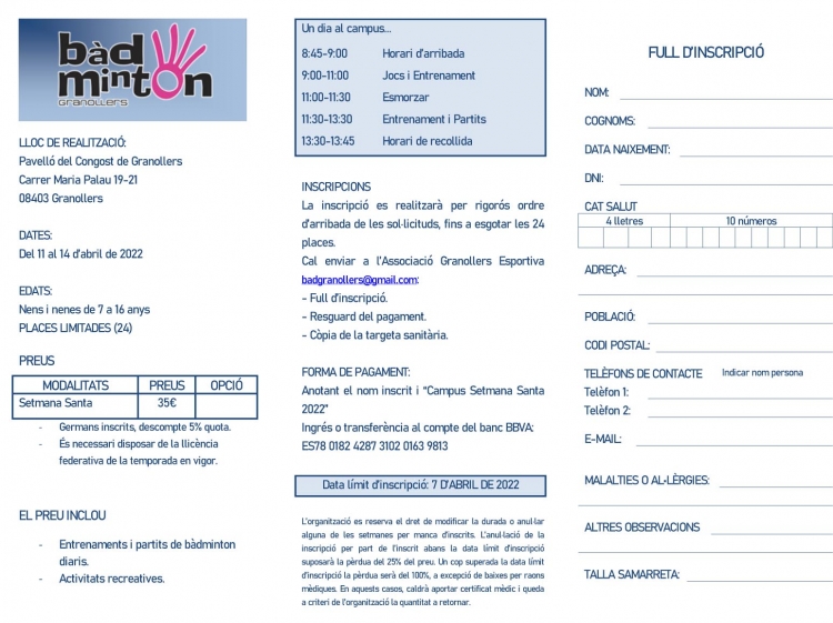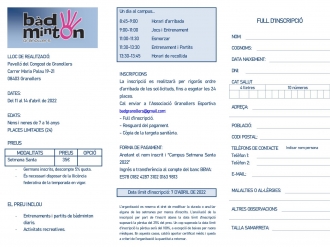 Campus de Bàdminton Setmana Santa 2022 Granollers