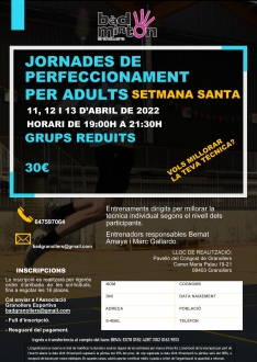 JORNADES PERFECCIONAMENT PER ADULTS SETMANA SANTA