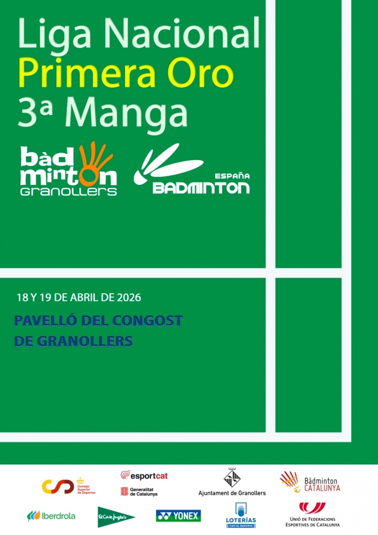 El Pavelló del Congost de Granollers serà l’escenari, els dies 18 i 19 d’abril, de la tercera jornada de la Liga Primera Nacional Oro de Bádminton, una cita clau del calendari estatal que reunirà 12 equips d’arreu d’Espanya en una fase decisiva de la competició. Després de dues jornades d’alta igualtat, els conjunts afronten aquest cap de setmana amb la necessitat de sumar punts importants tant en la lluita per la part alta de la classificació com en la batalla per la permanència, fet que anticipa una jornada d’alta intensitat a la pista.